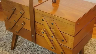 Z sekretnym, przypominającym kufer wyglądem i przegródkami, które otwierają się jak za dotknięciem czarodziejskiej różdżki, ten mały mebel wciąż intryguje. Dumnie stoi na