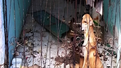 Historia ratunku matki psa i jej czterech szczeniaków zaczyna się od przerażającego odkrycia. Zablokowane drzwi wskazywały, że zwierzęta były celowo trzymane w zamknięciu,