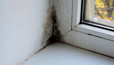 Po zimie pleśń pojawia się na wewnętrznej stronie plastikowych okien i na zboczach wokół nich, łatwo widoczna dzięki dużym, czarnym plamom rozprzestrzeniającym się