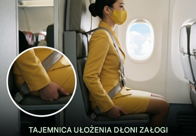 Utrzymując dłonie w tej pozycji, stewardesy zapobiegają niebezpiecznym ruchom ramion. Taka stabilność postawy pozwala im również na szybką reakcję w razie potrzeby.