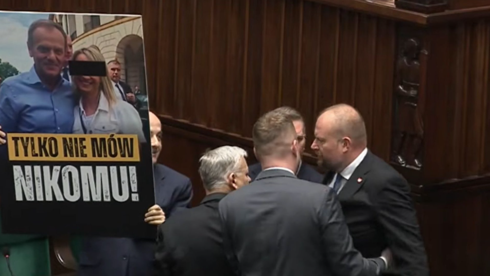 Bezpośrednią przyczyną zamieszania było pojawienie się Dariusza Mateckiego z dużym transparentem. Poseł PiS zaprezentował na sali plenarnej planszę przedstawiającą premiera Donalda Tuska oraz skazaną byłą działaczkę Platformy Obywatelskiej Kamilę L. z Kłodzka. Całość opatrzona była wyraźnym napisem: „Tylko nie mów nikomu”.