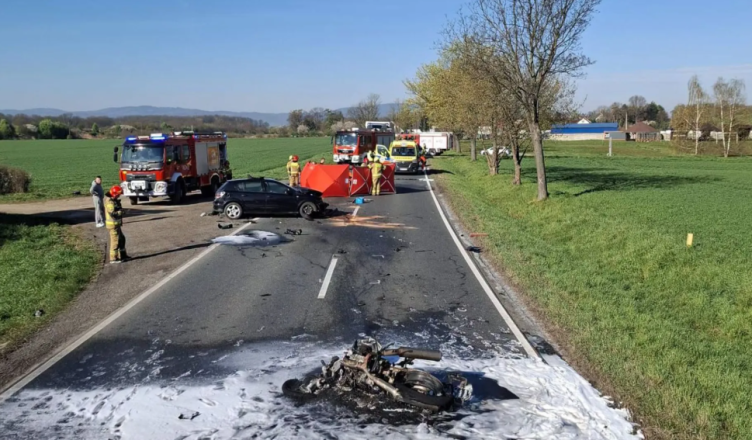 Z przekazanych informacji wynika, że w zdarzeniu uczestniczyły dwa pojazdy – auto osobowe oraz motocykl. Siła uderzenia była na tyle duża, że w jego następstwie doszło do pożaru motocykla. Na miejsce natychmiast skierowano służby ratunkowe, w tym straż pożarną, policję oraz zespoły ratownictwa medycznego.