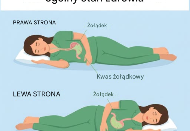 Kiedy śpisz na lewym boku, żołądek naturalnie układa się poniżej przełyku. W rezultacie soki trawienne pozostają na swoim miejscu, zamiast cofać się do góry. Taka pozycja pomaga utrzymać lepszą równowagę trawienną przez całą noc.
