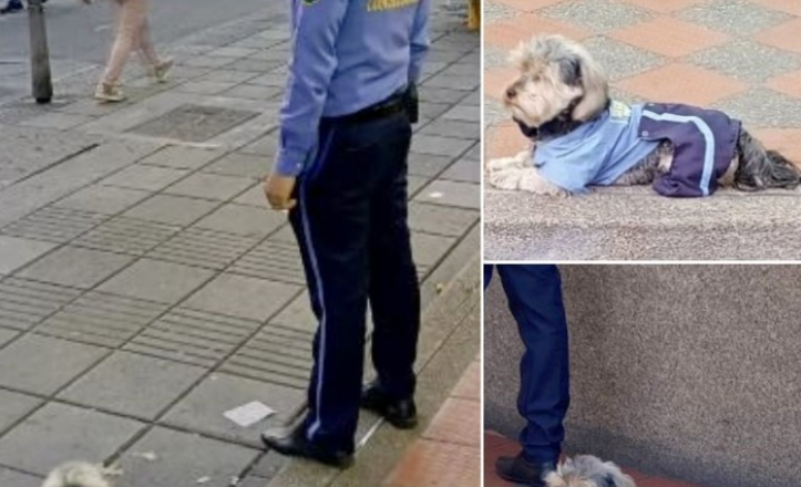 Kiedy Ivonne zauważyła małego pieska w idealnie skrojonej kamizelce „Private Security”, siedzącego dumnie obok strażnika, nie mogła powstrzymać uśmiechu.