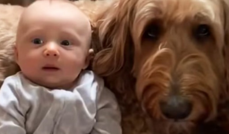 Mówiący labradoodle słodko mówi do swojego ludzkiego braciszka: „Kocham cię”.