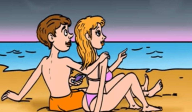 Zanurz się w tej pozornie sielankowej scenerii: para cieszy się spokojną i romantyczną randką na plaży, z szumem oceanu w tle.