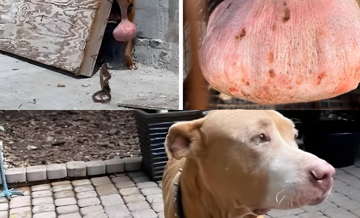 Na jej szyi była gruba linka — prymitywne, bolesne ograniczenie, które przez lata wgryzało się w jej skórę, tego rodzaju prowizoryczna obroża używana przez tych, którzy postrzegają zwierzęta nie jako istoty żyjące, ale jako rzeczy. Samo to ograniczenie było szokujące, ale to, co naprawdę zdumiało ratowników, to ogromny, ciężki guz wiszący z jej ciała. Był on groteskowy, obciążający ją zarówno fizycznie, jak i psychicznie, i wyraźnie rosnący od miesięcy, może nawet lat. Jak udało jej się przeżyć tak długo, pozostawało tajemnicą. Ale oto była — żywa, przestraszona i wciąż walcząca.