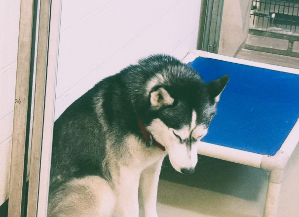 Husky są z reguły bystre, energiczne i ciekawe świata, ale on siedział cicho w kącie, ze spuszczoną głową i zamkniętymi oczami, dźwigając ciężar, który sprawiał wrażenie, jakby miał kilka lat.