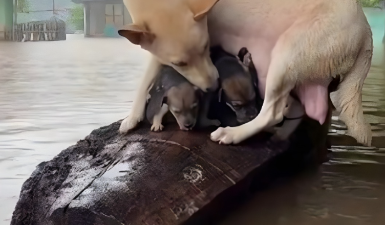 Drogi zniknęły, pola zamieniły się w rzeki, a domy stały się wyspami, uwięzionymi w okrutnym morzu. W samym środku tego chaosu, gdzie ludzie usiłowali caczać się na wyższe tereny, a zwierzęta z niepokojem się rozpraszały, jedna mała rodzina walczyła cicho o przetrwanie: matka pies i jej nowo narodzone szczenięta.