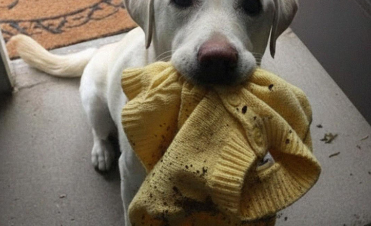 Kiedy otworzyłem drzwi, Oslo stał tam z nastawionymi uszami i wzrokiem wbitym we mnie. Jego ogon się nie ruszał. W pysku miał kawałek żółtego materiału.