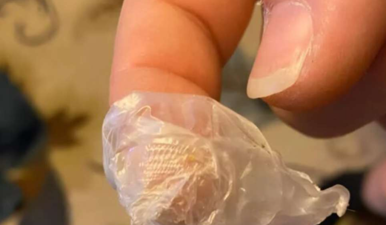 W sypialni, tuż przy łóżku, zauważyłam na dywanie coś dziwnego: cienki, półprzezroczysty przedmiot, który przypominał porzuconą wstążkę lub kawałek folii.