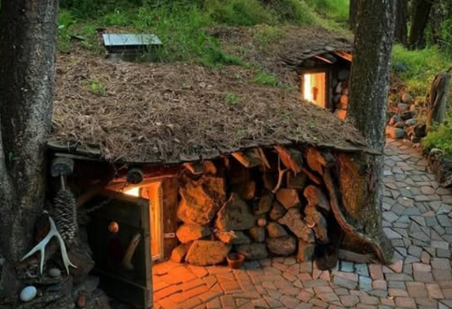 Den nabył ziemię, pracował nad swoim pomysłem i pieczołowicie uprawiał ziemię, aby uformować ściany i dach swojego podziemnego schronienia. Każdy przedział został starannie zaprojektowany, a połączone ze sobą przejścia przypominają nory hobbita z Twojego ulubionego filmu.