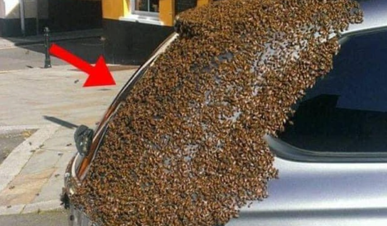 Wracając do samochodu, była kompletnie zszokowana widokiem tysięcy pszczół pokrywających tył pojazdu , tworzących ogromny rój.