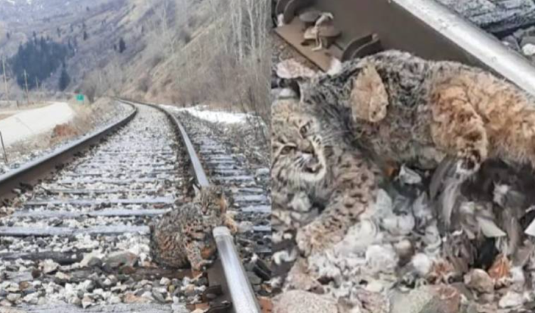 Dziki ryś znalazł się w dramatycznej sytuacji, gdy jego tylne łapy przymarzły do torów w Kolumbii Brytyjskiej.