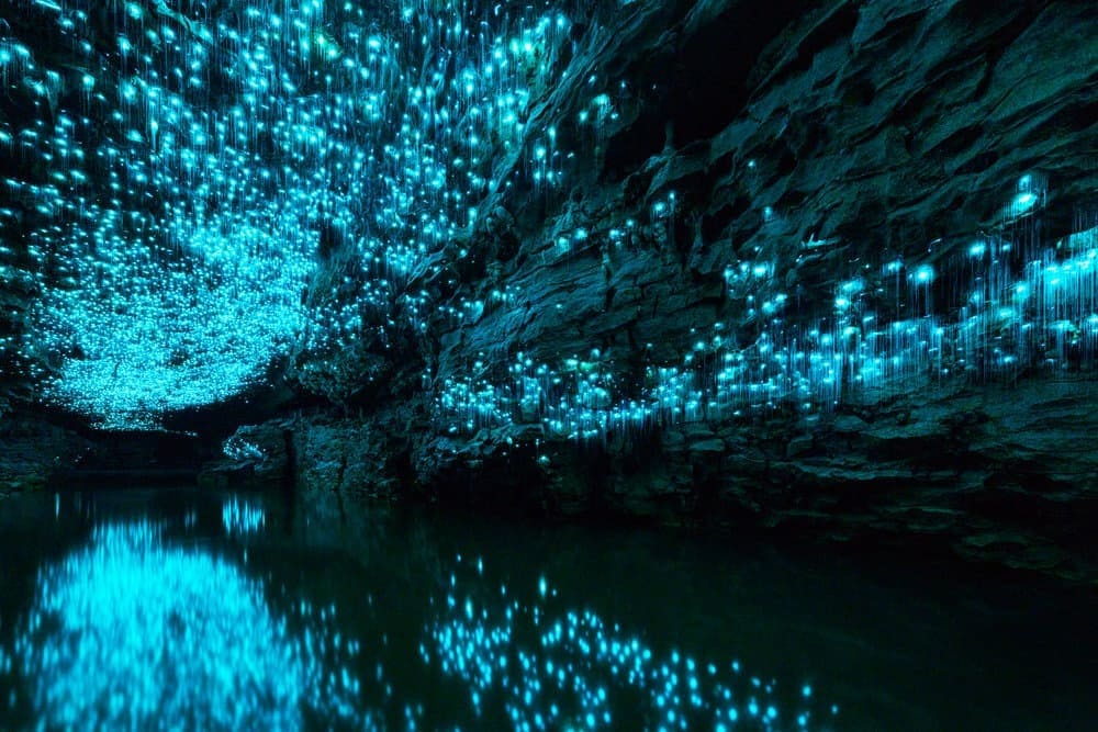 Na Malediwach linia fal lśni, a w Nowej Zelandii podobnie tajemniczą, niebieskawą poświatę można dostrzec na suficie głębokiej jaskini. Owady odpowiedzialne za światło, spokrewnione z komarami, to gatunek unikatowy, występujący tylko w tym regionie. Są nieszkodliwe dla ludzi, dlatego co roku tysiące turystów przyjeżdża, aby podziwiać „świetliki” oraz osobliwe stalaktyty i stalagmity formowane przez wodę morską.