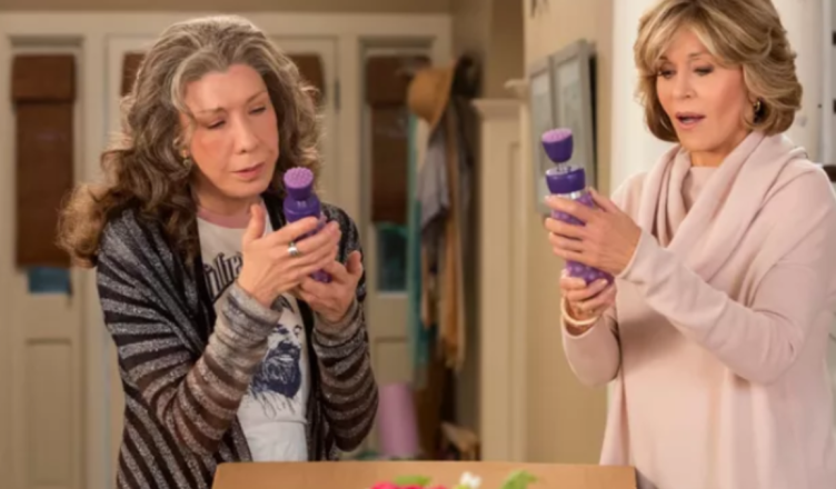 „Jeśli ktokolwiek musi usiąść na twarzy Ryana Goslinga, to będę to ja”. Ta kwestia 84-letniej amerykańskiej aktorki Jane Fondy z serialu Netflixa Grace i Frankie może być zarówno zabawna, jak i niepokojąca. Na progu emerytury, po coming oucie męża, jej postać, sztywna, rozwiedziona celebrytka, mieszka z hipisem i razem zakładają firmę produkującą wibratory .