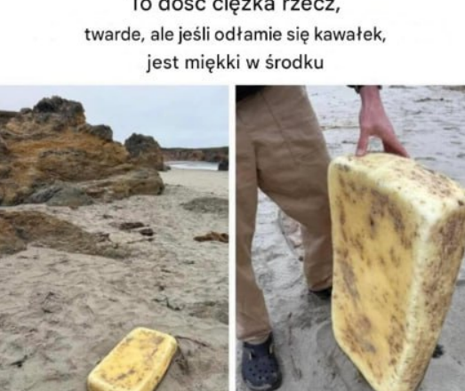 10. Co wyrzuciło na brzeg? To dość ciężka rzecz, twarda, ale jeśli odłamie się kawałek, w środku jest miękka.