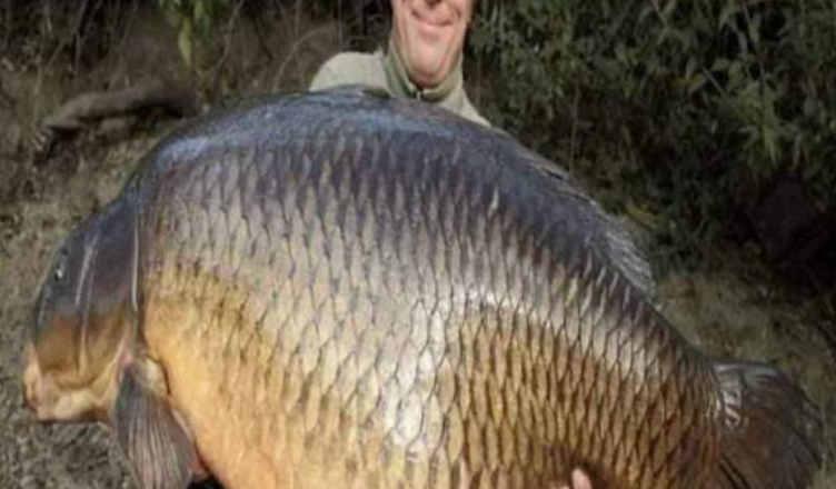 Zwycięski rybak z dumą przyniósł do domu ogromnego karpia, owoc udanego dnia spędzonego na łowieniu.