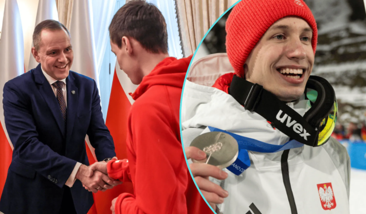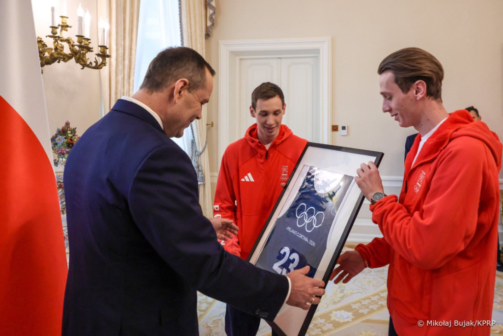 Podczas uroczystości w Pałacu Prezydenckim, która miała być jedynie oficjalnym podziękowaniem za godne reprezentowanie kraju, doszło do niezwykle wzruszającego momentu. Kacper Tomasiak wraz z kolegami z drużyny wręczył Prezydentowi Karolowi Nawrockiemu wyjątkową pamiątkę – oprawiony w ramę plastron startowy z numerem 23. Była to koszulka, w której polscy skoczkowie wywalczyli srebrny medal w morderczym konkursie w Predazzo.