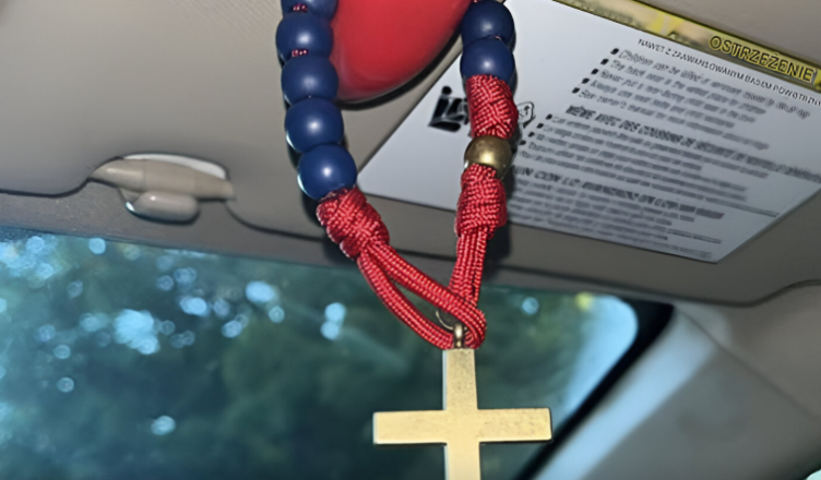 „Prawdziwe znaczenie noszenia różańca w samochodzie” często budzi mieszane reakcje.