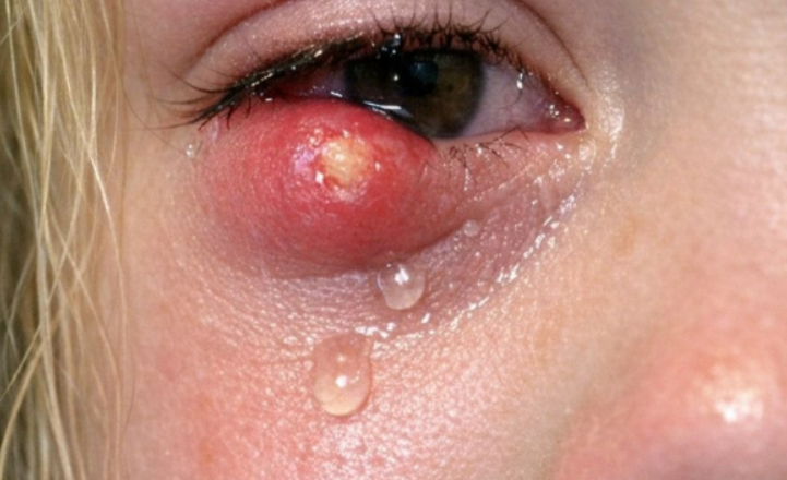 - Červená, oteklá, bolestivá boule na okraji očního víčka
