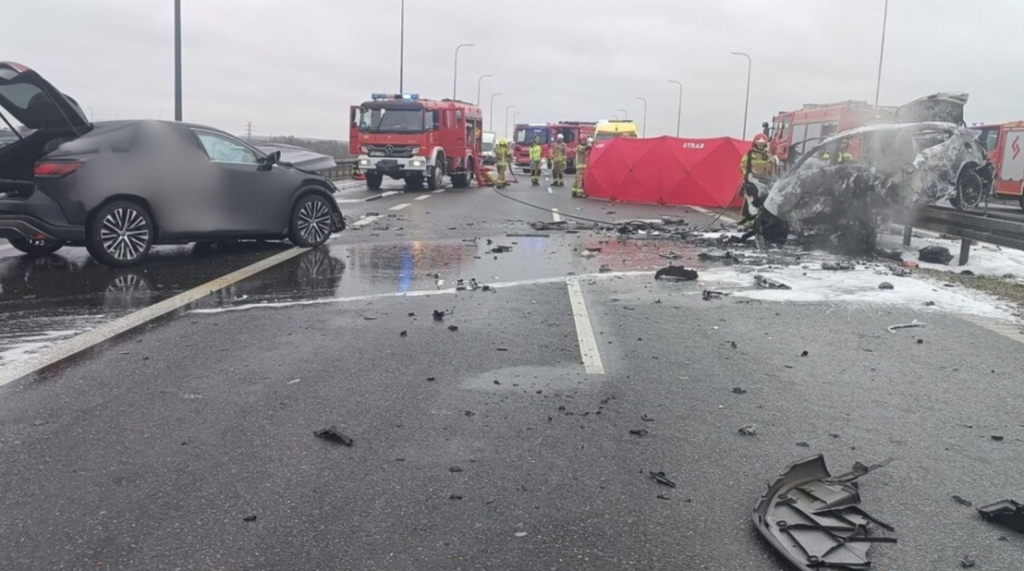 Najpierw doszło do zderzenia z prawidłowo jadącą lawetą, a następnie do czołowego uderzenia z Lexusem. Siła kolizji była ogromna – pojazd sprawcy uderzył w bariery oddzielające pasy ruchu i stanął w ogniu. W wyniku wypadku kierowca Hyundaia poniósł śmierć na miejscu.