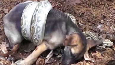 Bohaterska akcja ratunkowa: szczeniak Jasper zostaje uratowany z śmiertelnego uścisku pytona dywanowego w zapierającym dech w piersiach momencie